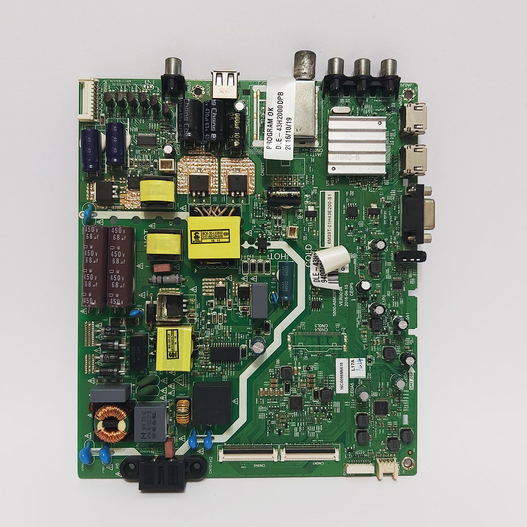 مین برد تلویزیون دوو مدل 43H2000 یک قطعه اصلی و حیاتی در عملکرد صحیح دستگاه شماست. این برد وظیفه مدیریت کلیه ورودیها، خروجیها، صدا، تصویر و پردازش سیستم عامل را بر عهده دارد. در صورتی که تلویزیون شما روشن نمیشود، تصویر ندارد، یا ورودیهای HDMI آن کار نمیکند، احتمال خرابی مین برد وجود دارد.